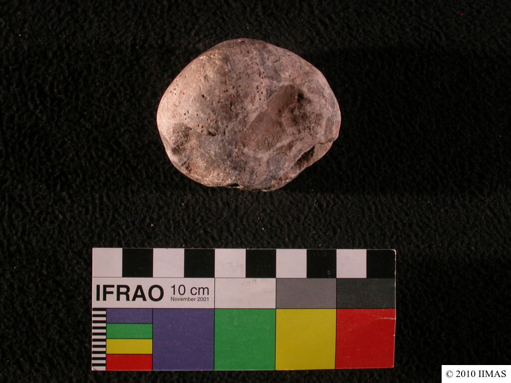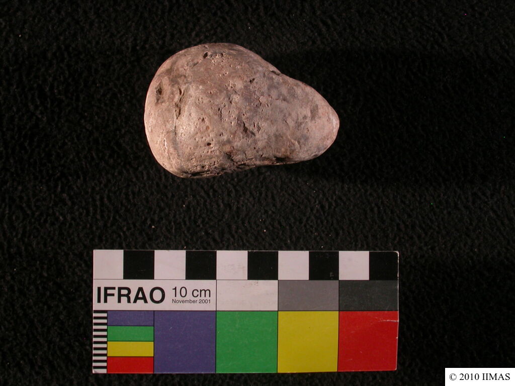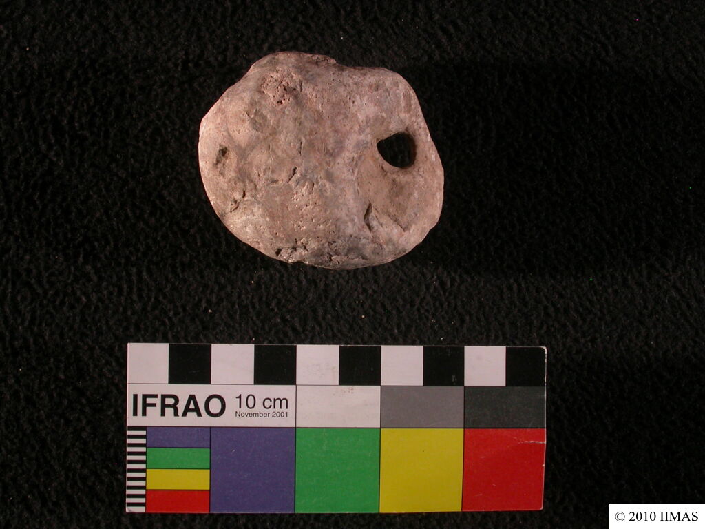 Description (summary) 2010-08-15 bS Shapeless weight stone with a hole on the upper part. [Input: U815BS.j]