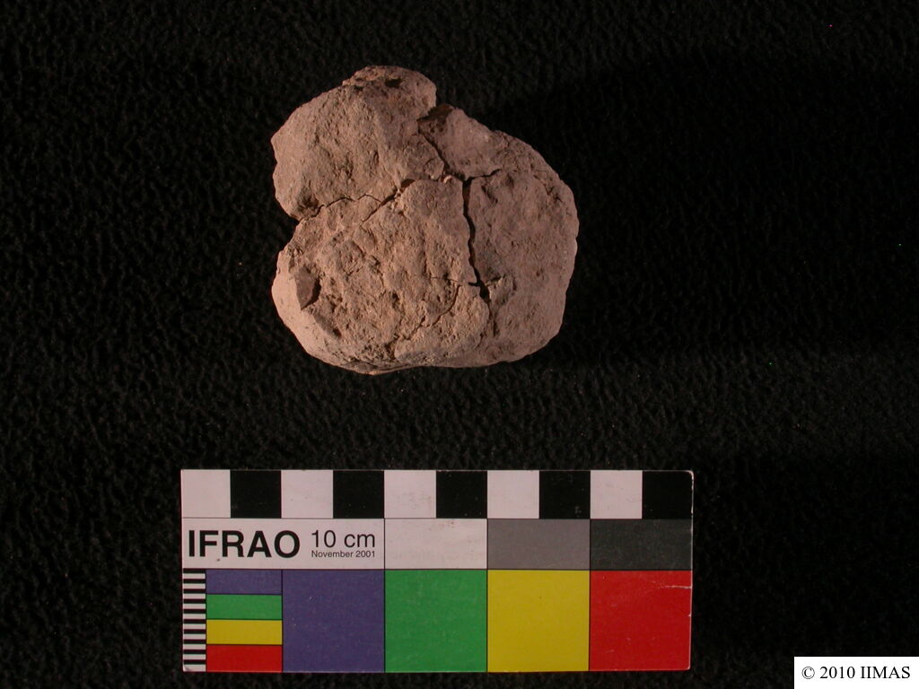 Description (summary) 2009-08-04 sG Large clay ball, flattened and irregular on several sides, heavily cracked, surface crumbly. [Input: T804SG.j]