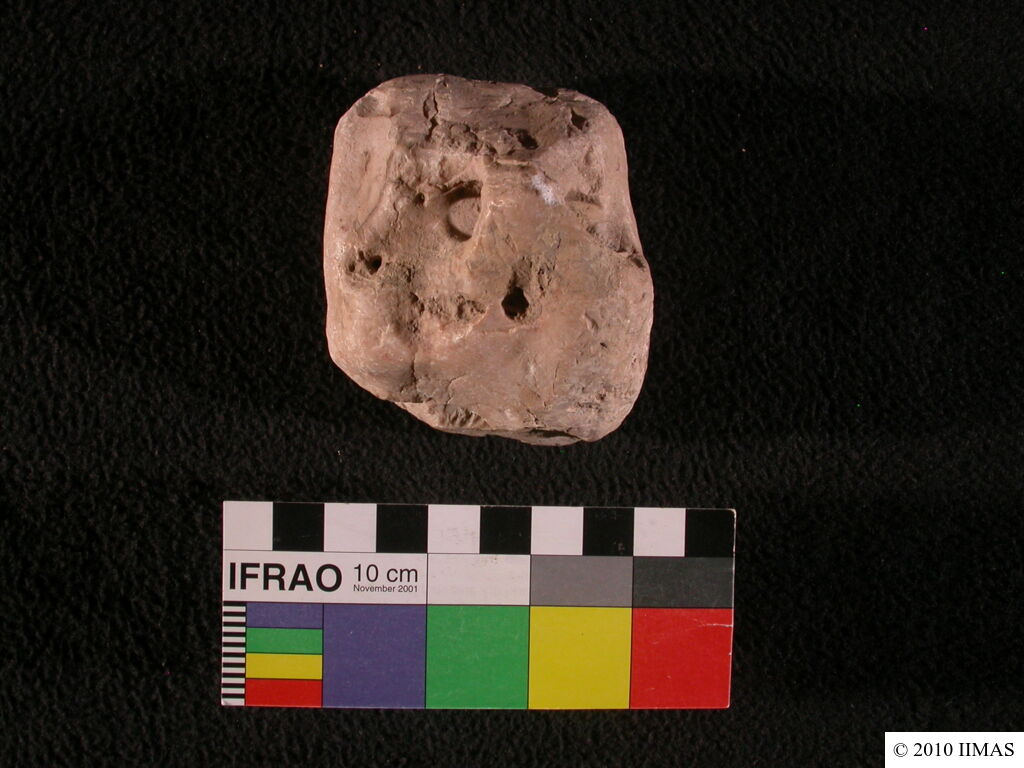 | Description (summary) | 2010-09-05 | bS | Stone object with a flat base on the lower part and a hole (0.95 cm diam.) through the smaller upper part (Probably used for weight purposes). [Input: U905BS.j] |