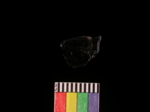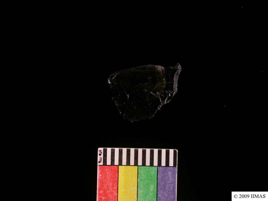 its an obsidian flake. the shape is irregular