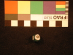 It is not certain that this item came from the locus at this level. One of the boys who remove the excavated dirt brought it in saying he found it in the dirt after the dirt being removed from the area (former A8 area S of wall f210, that is now part of A6, f212) was dumped from the wheelbarrow. The boy (Abdul Rahman) was accompanied by another older one (Hassein-who has been found to be good natured and reliable, but was not himself a witness of the retrieval) who introduced the matter to me. Further questioning of the boy who found the item revealed that he did not see it in the wheelbarrow, but only saw it roll down as he dumped the dirt. He retrieved it and showed it to the other who brought him and the item to us. Unless the antiquity of the item is ruled out by evidence from the item, it could have come from the excavation from a recent day. The hole of this bead had dirt in it, as did other parts of it. However, the pickmen were digging with the handpick and carefully, and swear that they could not have missed something like that! [Input: G806RK.J] |