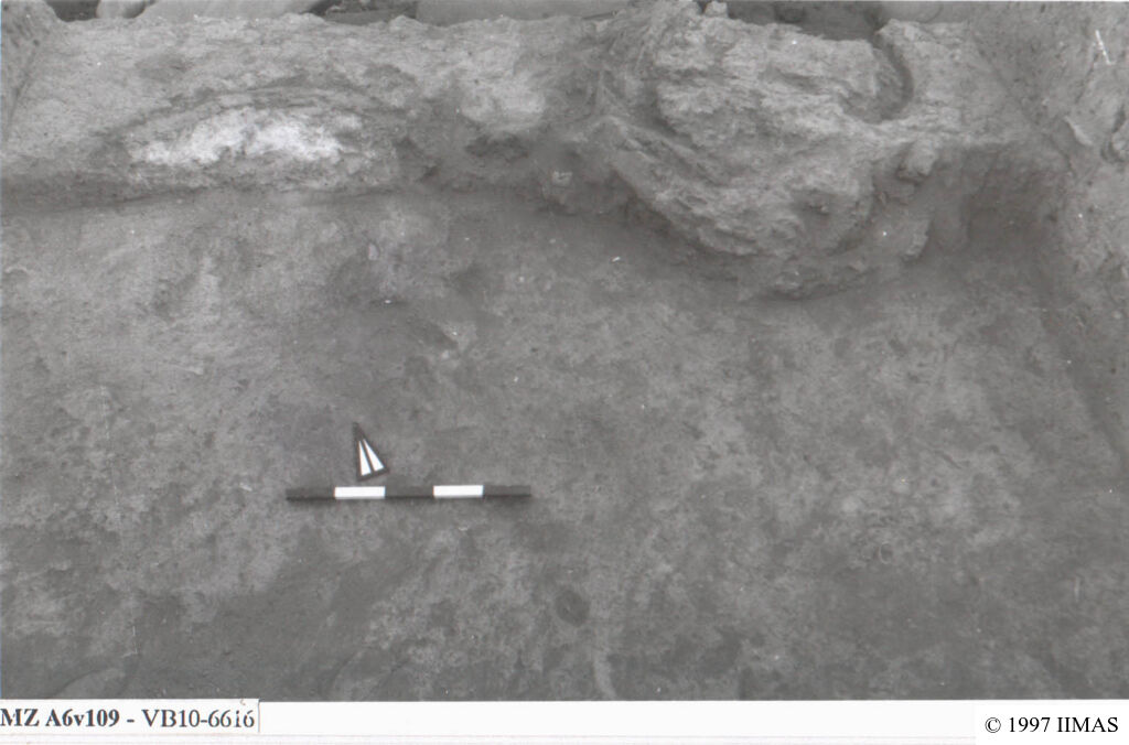 Shows the two tannurs, f406, 407 in k31. The closeups show respectively, f407 with its wall, white ash and reddish accum./brick (wall f210?) below; f406 with its multiple walls, the plaster on the inside of the inner wall of f406, the floor? that covers the accum. as well as goes over f406, and the relation of this to the section along the E of the locus. [Input: H708RK.J] |