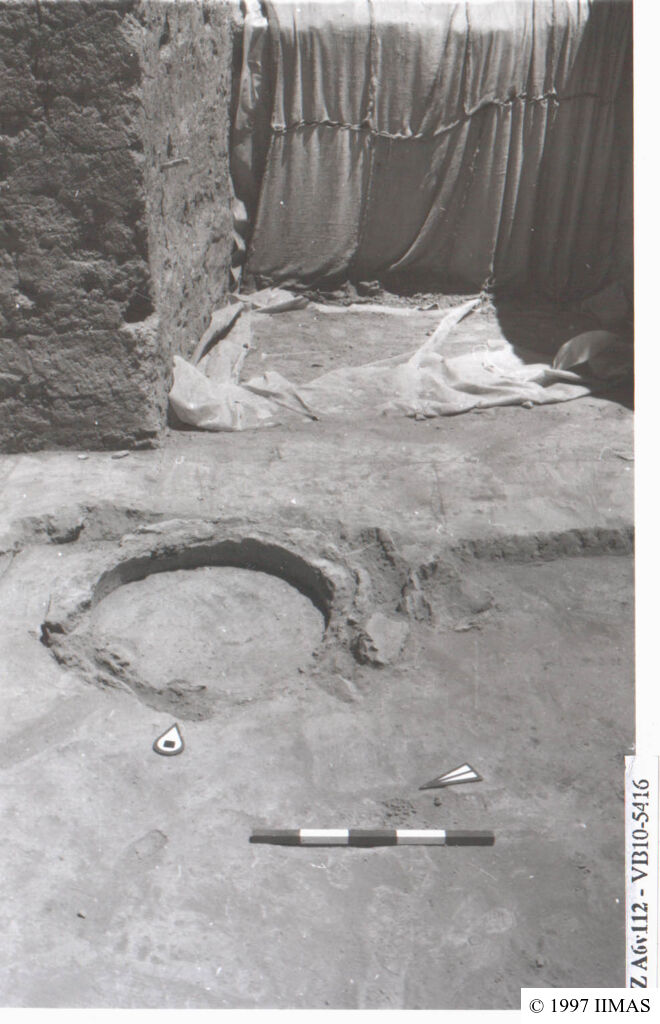 | Description (summary) | 1997-06-23 | rK | Profile of the preserved top of the tannur, f356, with the E wall f78 in the background. f220, the accumulation surrounding the top of f356 has been removed to the immediate E and W of the tannur top. [Input: H627RK.J] |