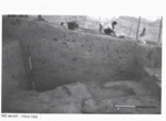 The secondary wall seen on top of f200 seems to be an integral part of the wall. It follows the same face and is flush with the N face of the lower wall. The lower courses are red bricks; the upper courses are of grey/buff ones which are easy to miss as bricks. It would seem that the two walls (f200 & 210) were the same height, just that f210 had higher courses of stones. [Input: H726RK2.J] |