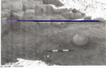 Description (summary) 1992-07-14 RK intended mainly to show the brick walls f8 and f30 in k169 bonding in the NE corner. The view also shows the lower limit of the brickwall below which floor accumulation covers the face of the stone layer. [Input: C7-3.J]