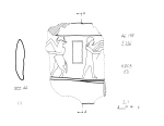 | Iconographic description, specific | 2005-08-00 | mKB | bullman with his head facing forward and body facing left with arms raised fighting, his right arm is elongated with the raised elbow prominent. The inscription box is placed in the center between the bullman and the hero in a somewhat pointed hat (or helmet?) and short skirt facing right with arms raised fighting an upright figure with hoofs. [Input: ZI827mKB.j] |
