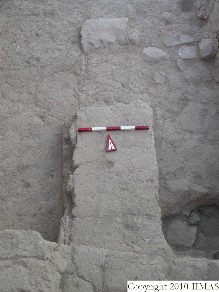 Description (summary) | 2003-08-25 | ms | possible pise wall. To the east is probable brickfall, f422, and accumulation from wall f413. To the south the connection with any surroundings is unclear and will not be investigated this season. [Input: N825ms.j] |