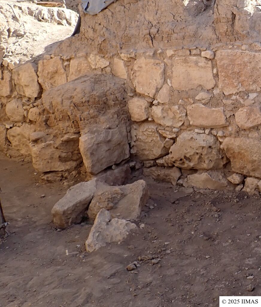 The wall seems fragile but no loss in mud bricks and the stones are in good shape, some cracks have appeared. No changes in comparison with last year.