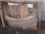 The wrapping of the wall has been torn, and we can clearly see that the top part of the mudbrick layer has eroded. Some damages appear on the surface of the face of the wall as well.