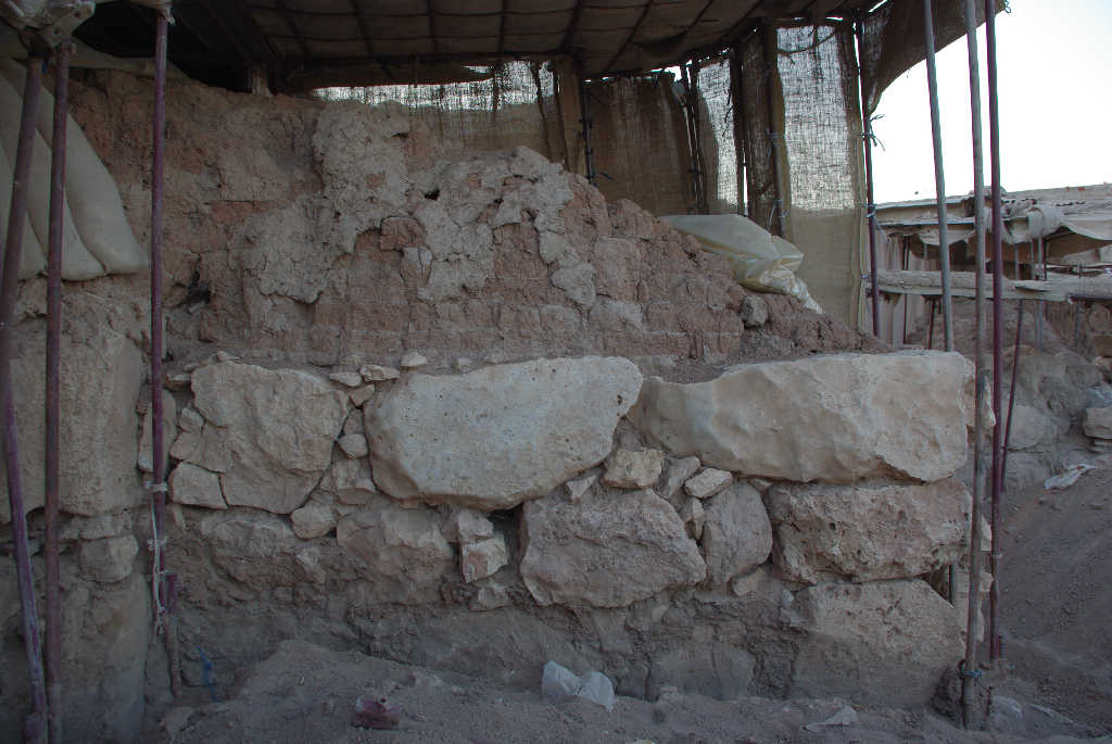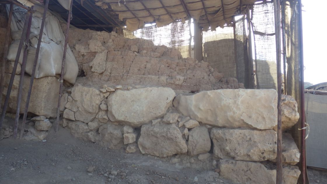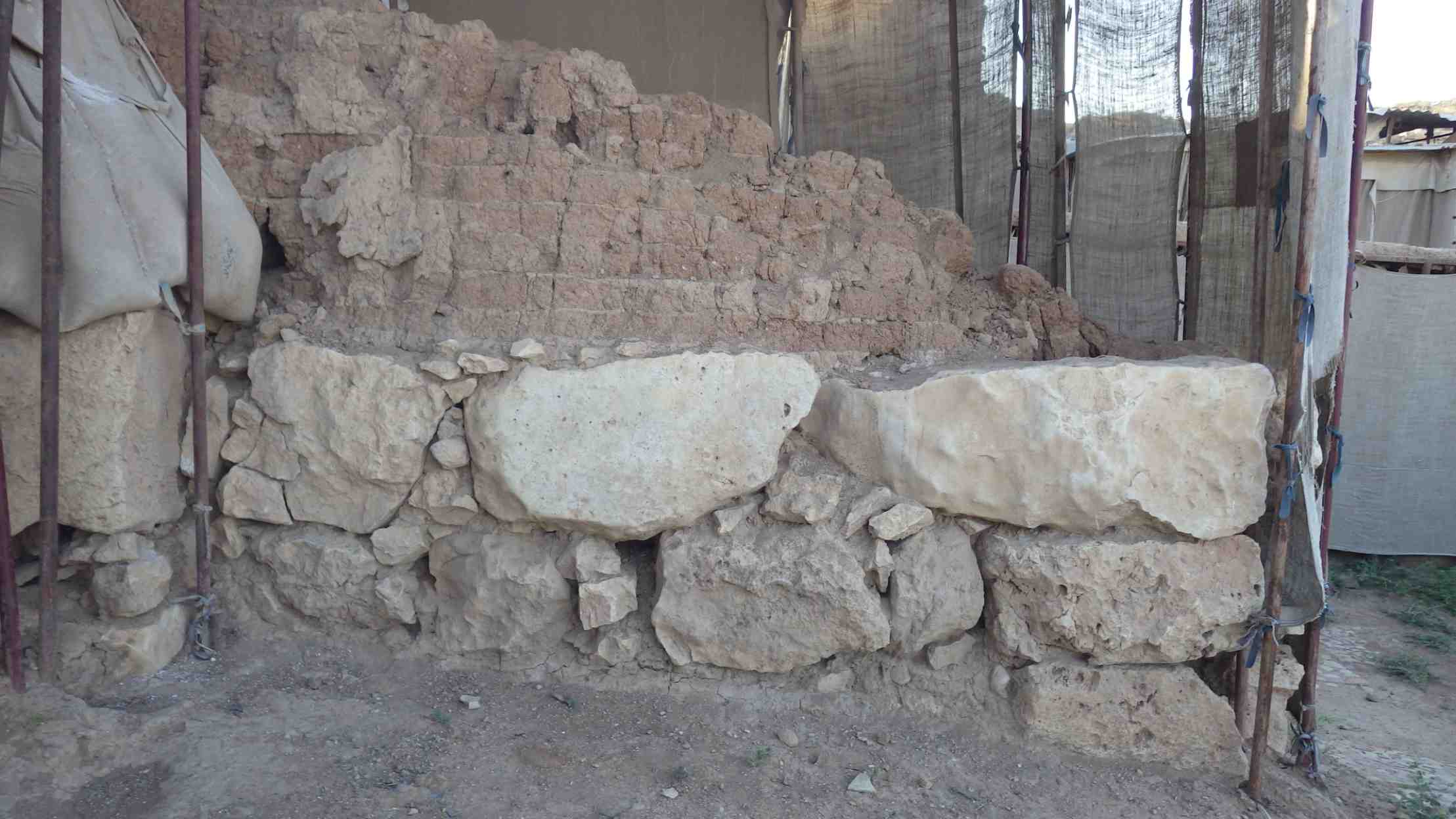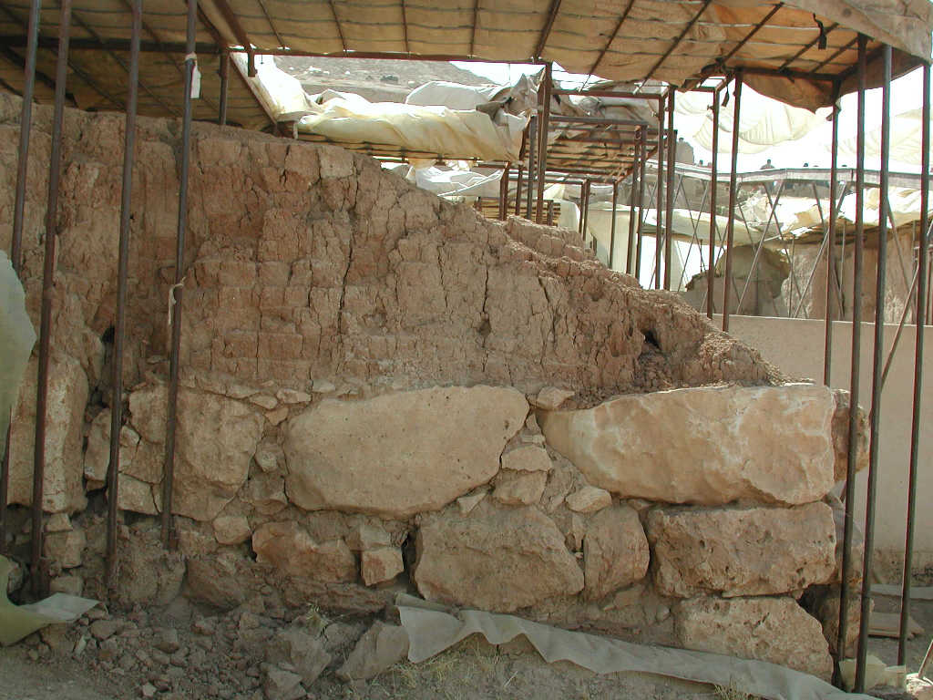 Wall is in the same condition as it was in 2015. No obvious changes in the stones or the mud bricks. Wall is usually protected with a plastic cover, to reduce the effect of water