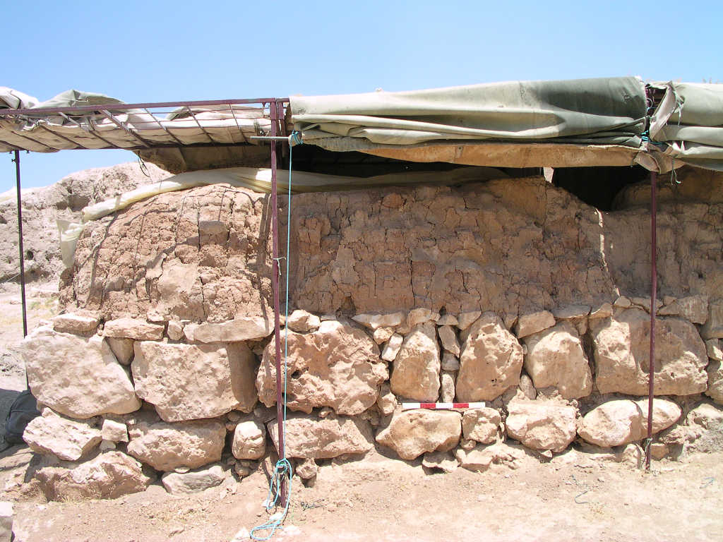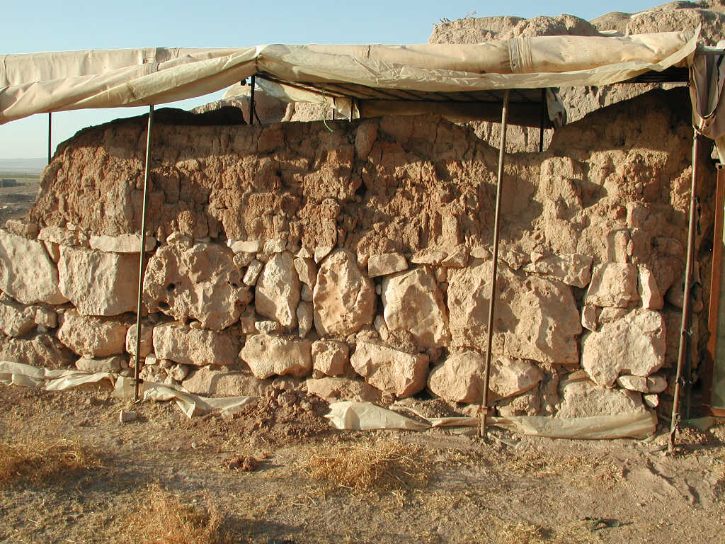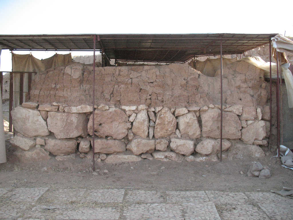 Stones are in a good shape. No additional losses in the small stones between the larger ones. The mud brick part seems to be slightly drier than it was in 2015. The plaster layer might be slightly frailer than before. In general, the wall is in good condition.
