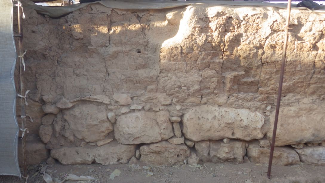 No loss in the mortar, stones or the mud bricks. There are some cracks but overall, the wall is in good condition. No visible changes in this wall.