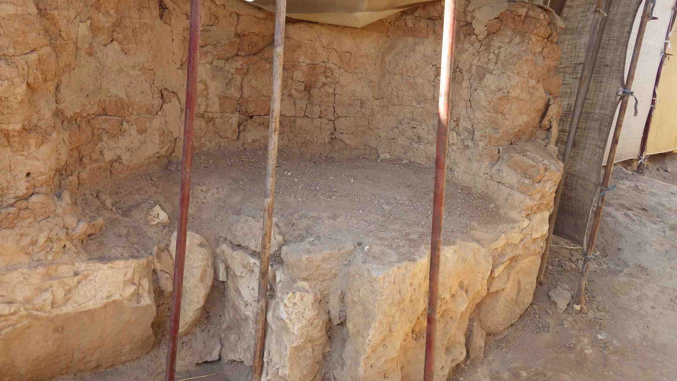 No loss in mud brick and stones, portion of mud plaster fell off, and there are cracks. Overall, the wall is in good condition.