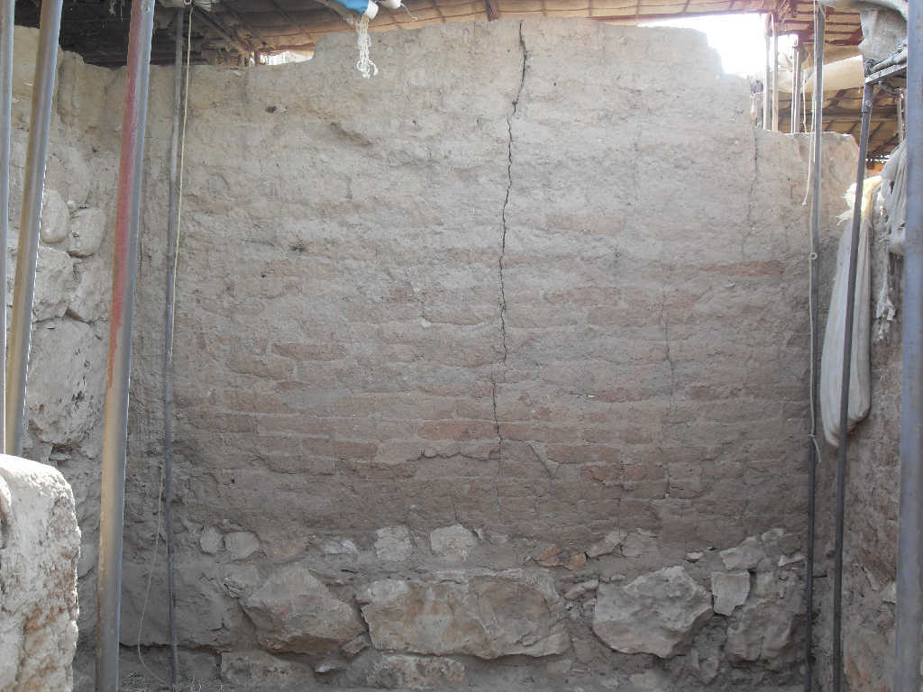 No changes in the wall. No increase in the length or width of the cracks. Face of the wall is in a good condition. No losses in the smaller stones.