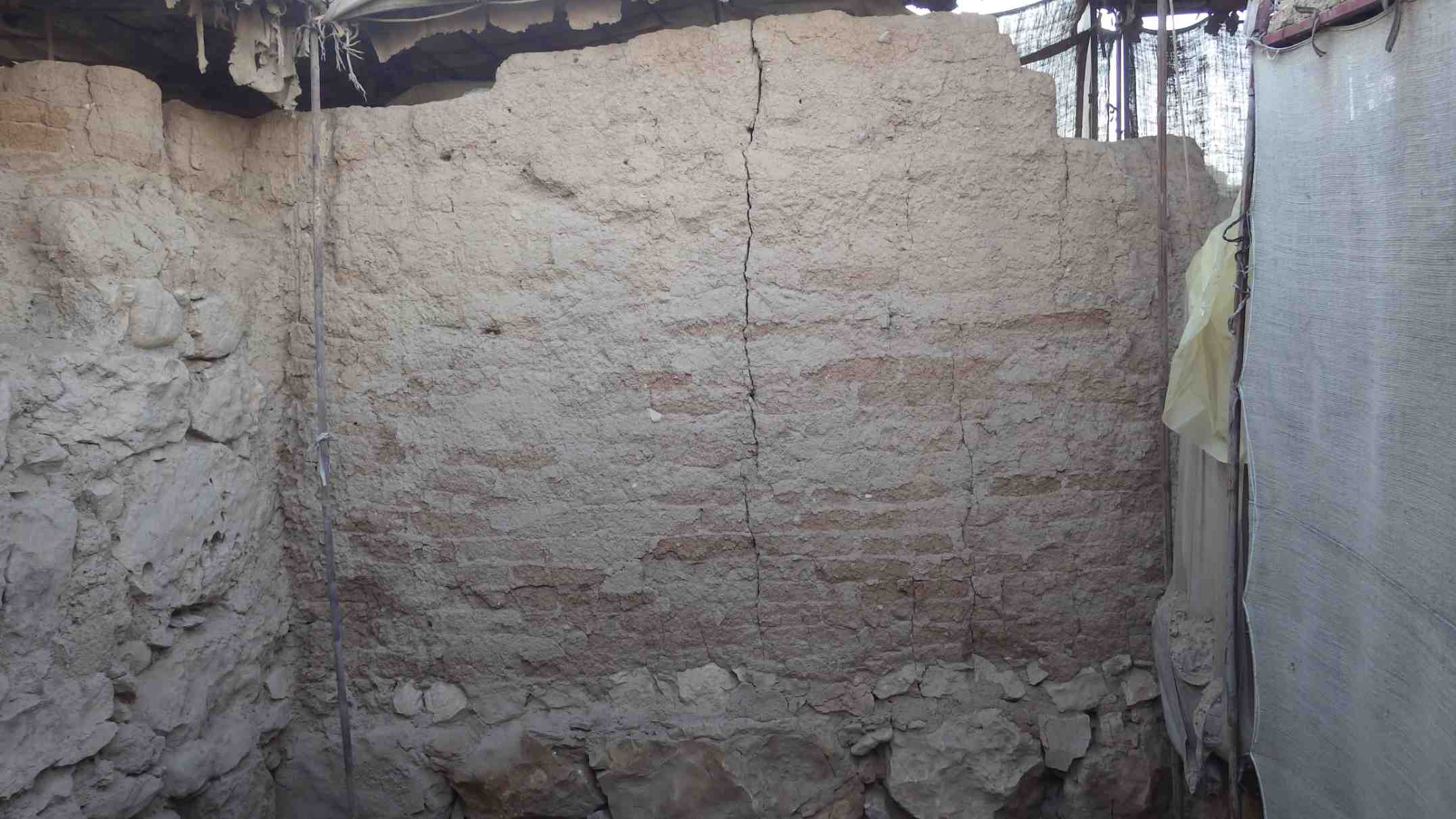 No increase in the length or width of the cracks. Face of the wall is in good condition. No losses in the smaller stones.