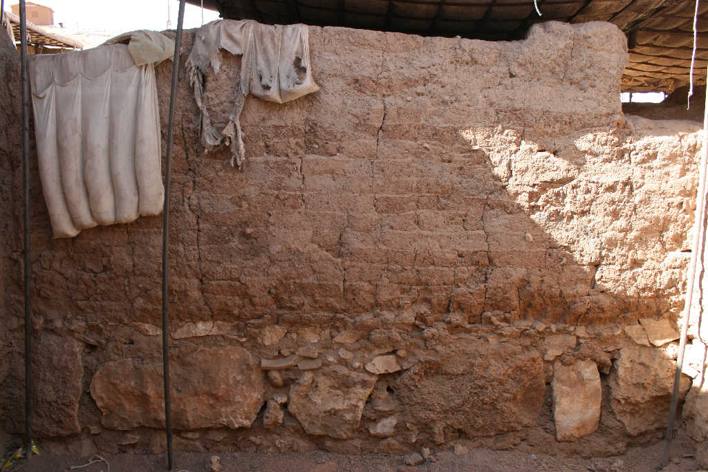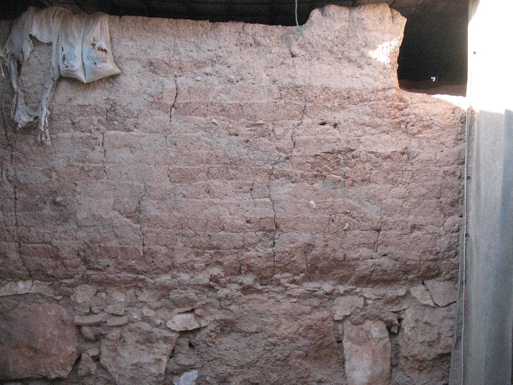 Very minor loss in the surface layer of the mud bricks, but the cracks are still the same size. There are no losses in stones. Overall, the wall is in good condition.