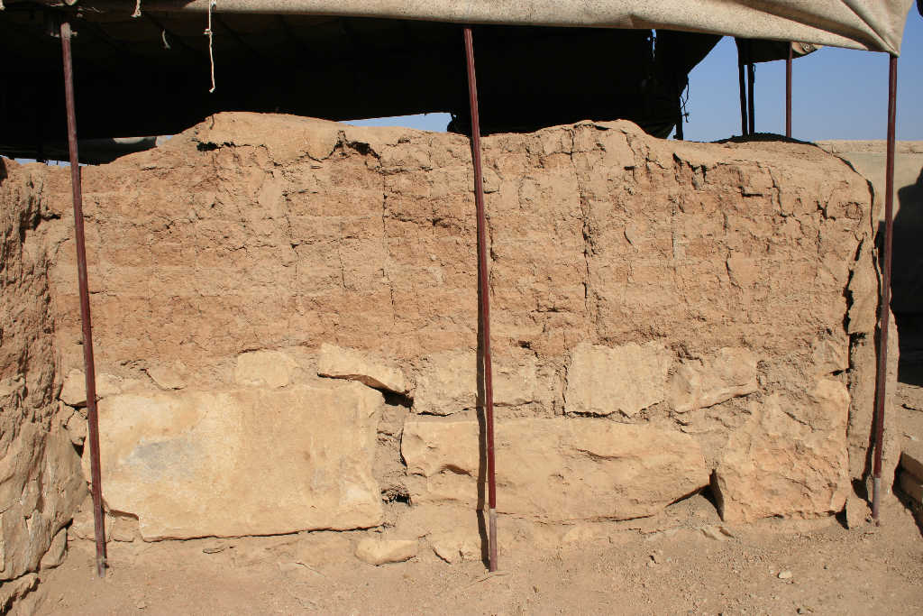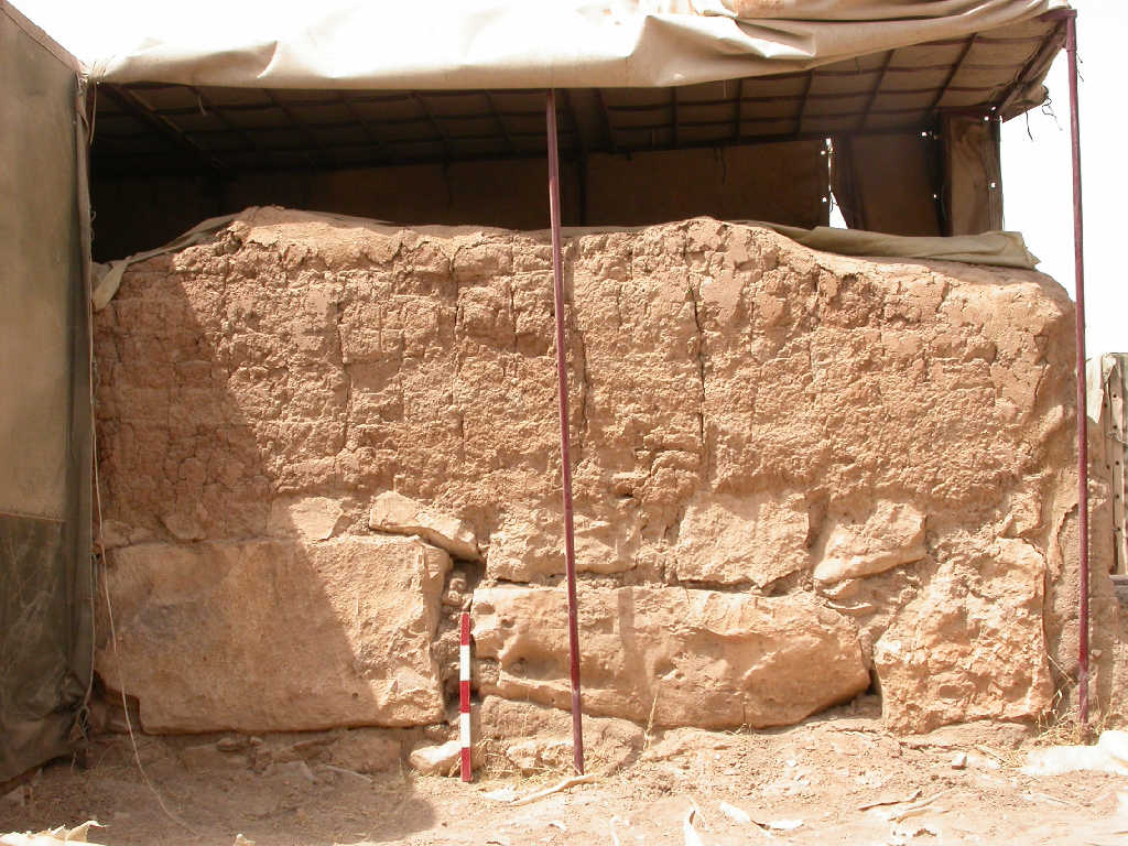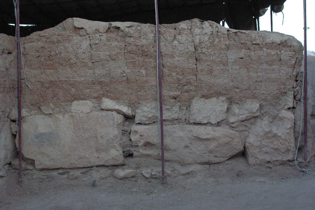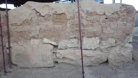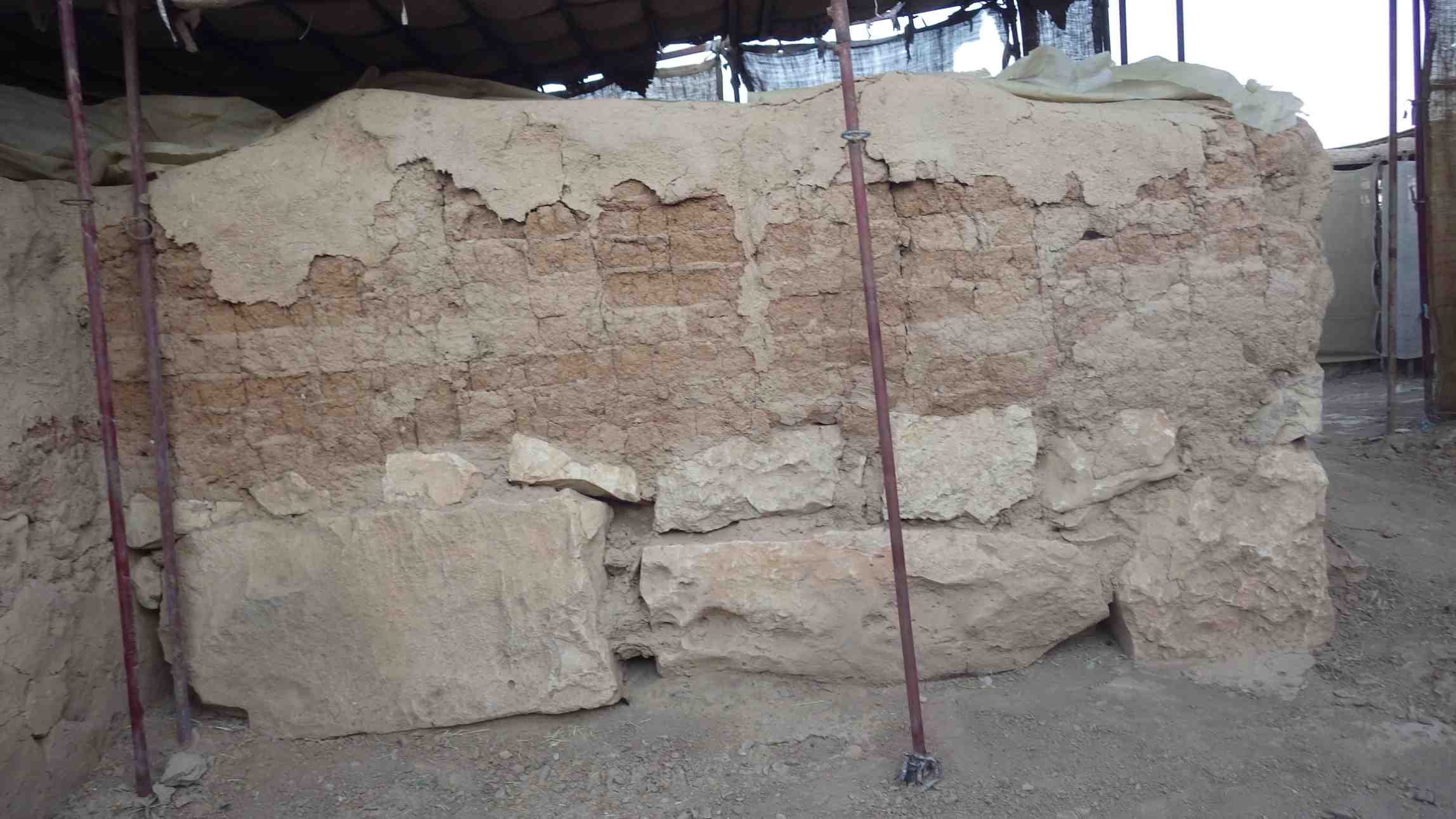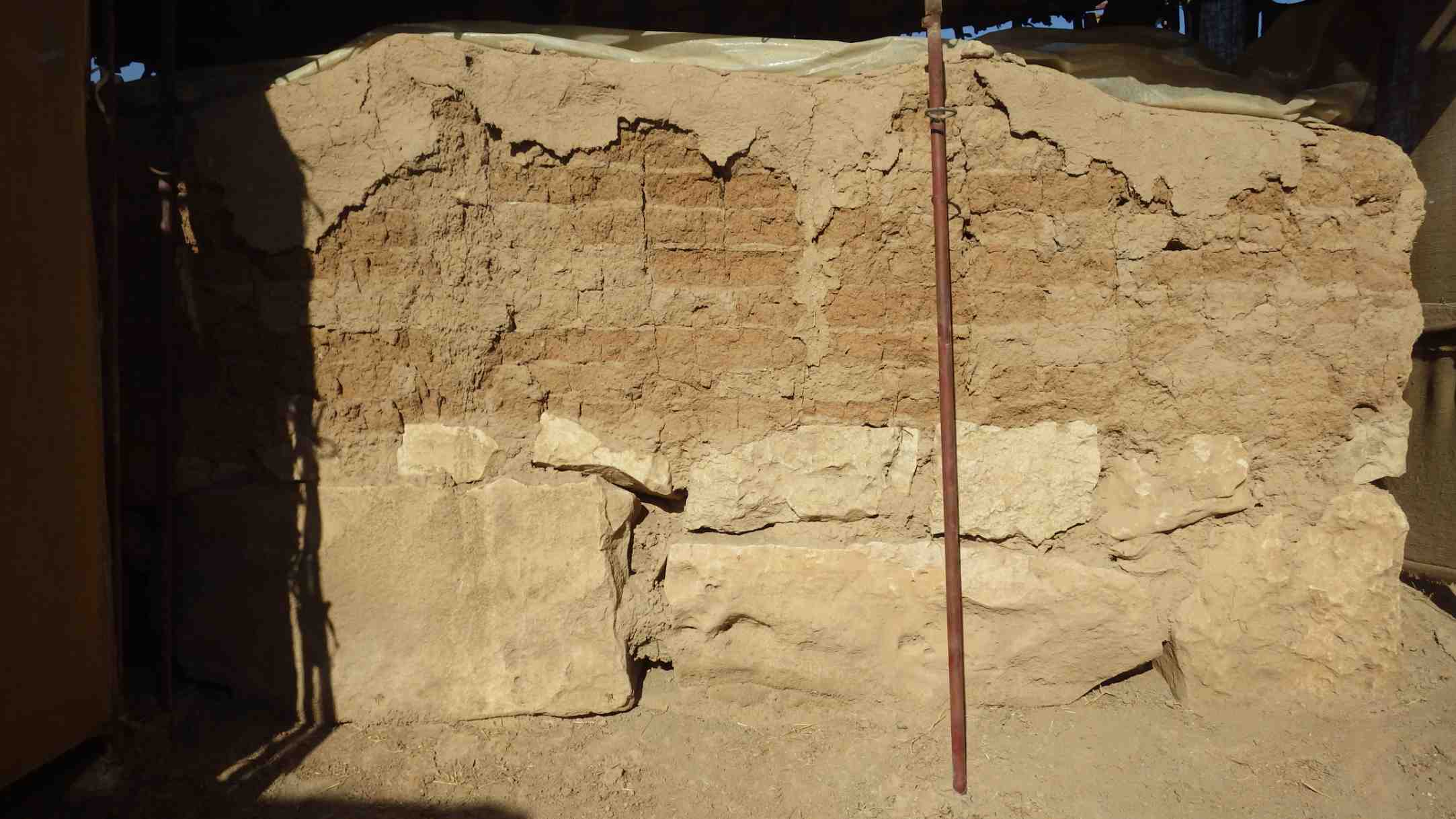 The wall is in good condition except for minor erosion of mud plaster on the top of the wall.