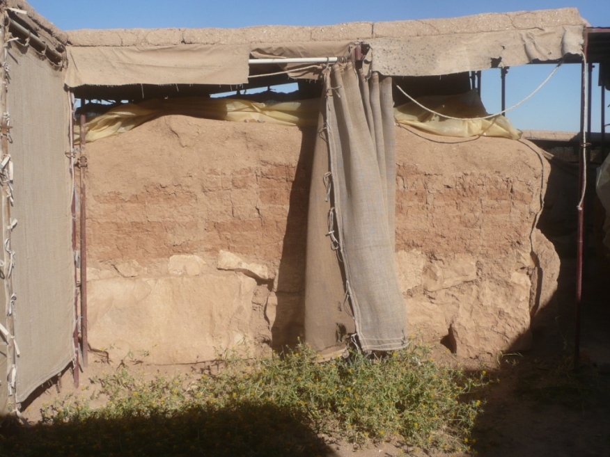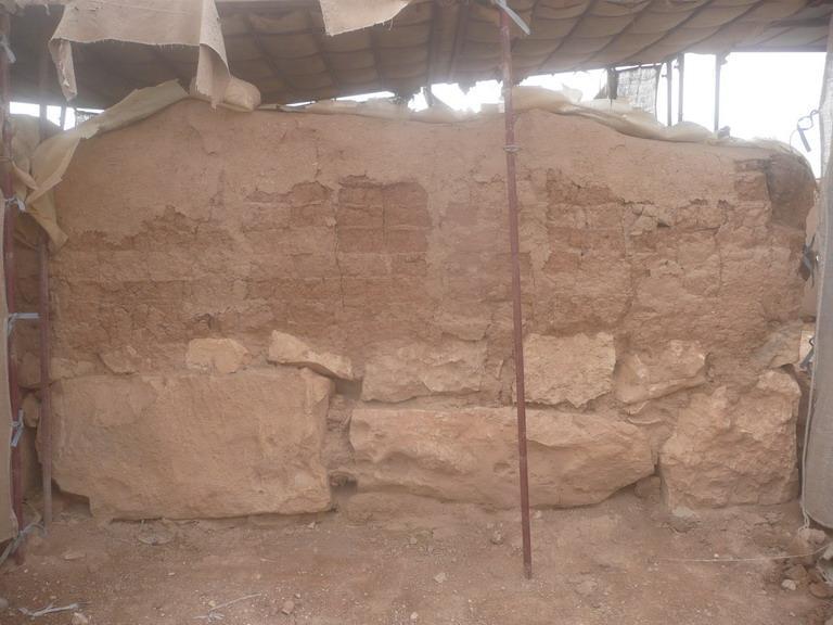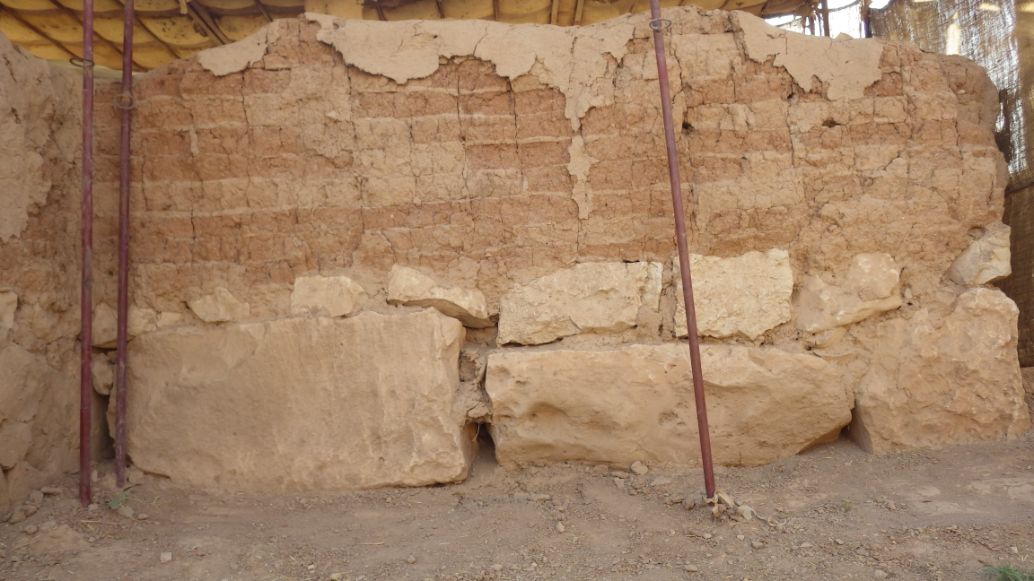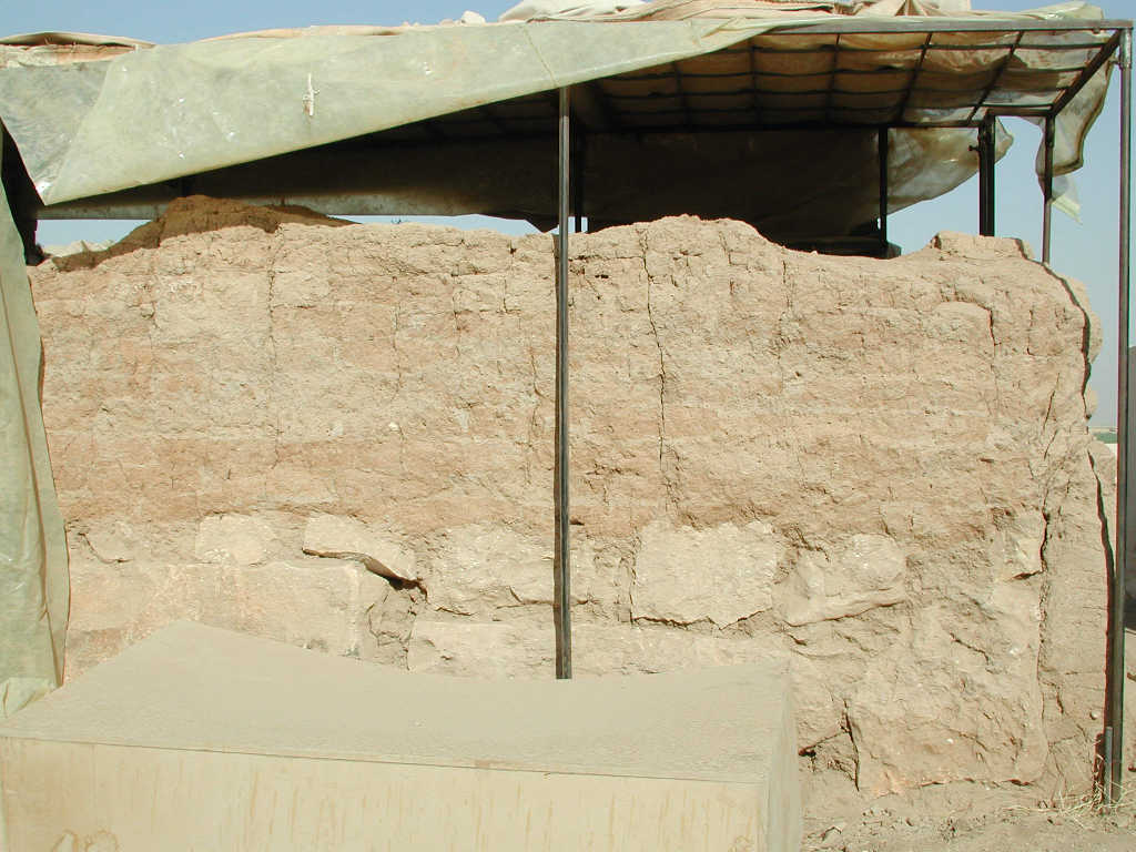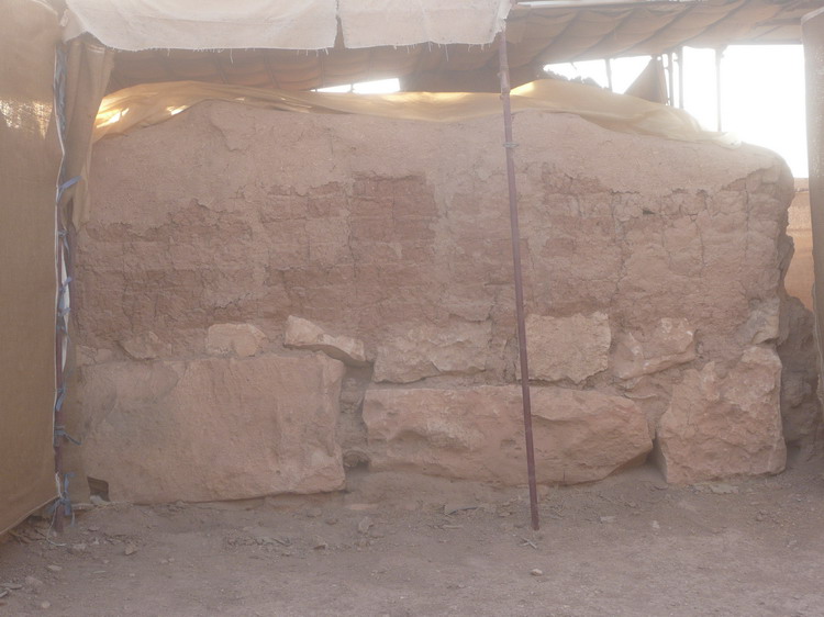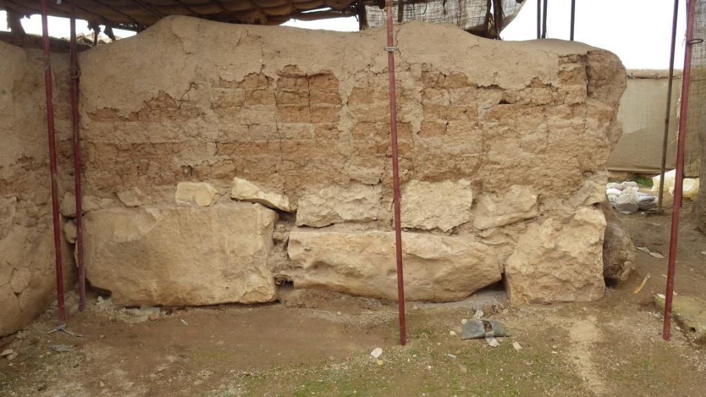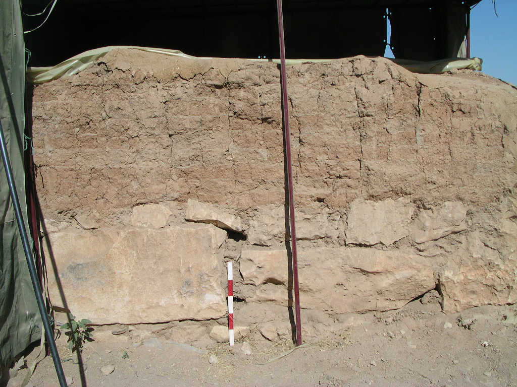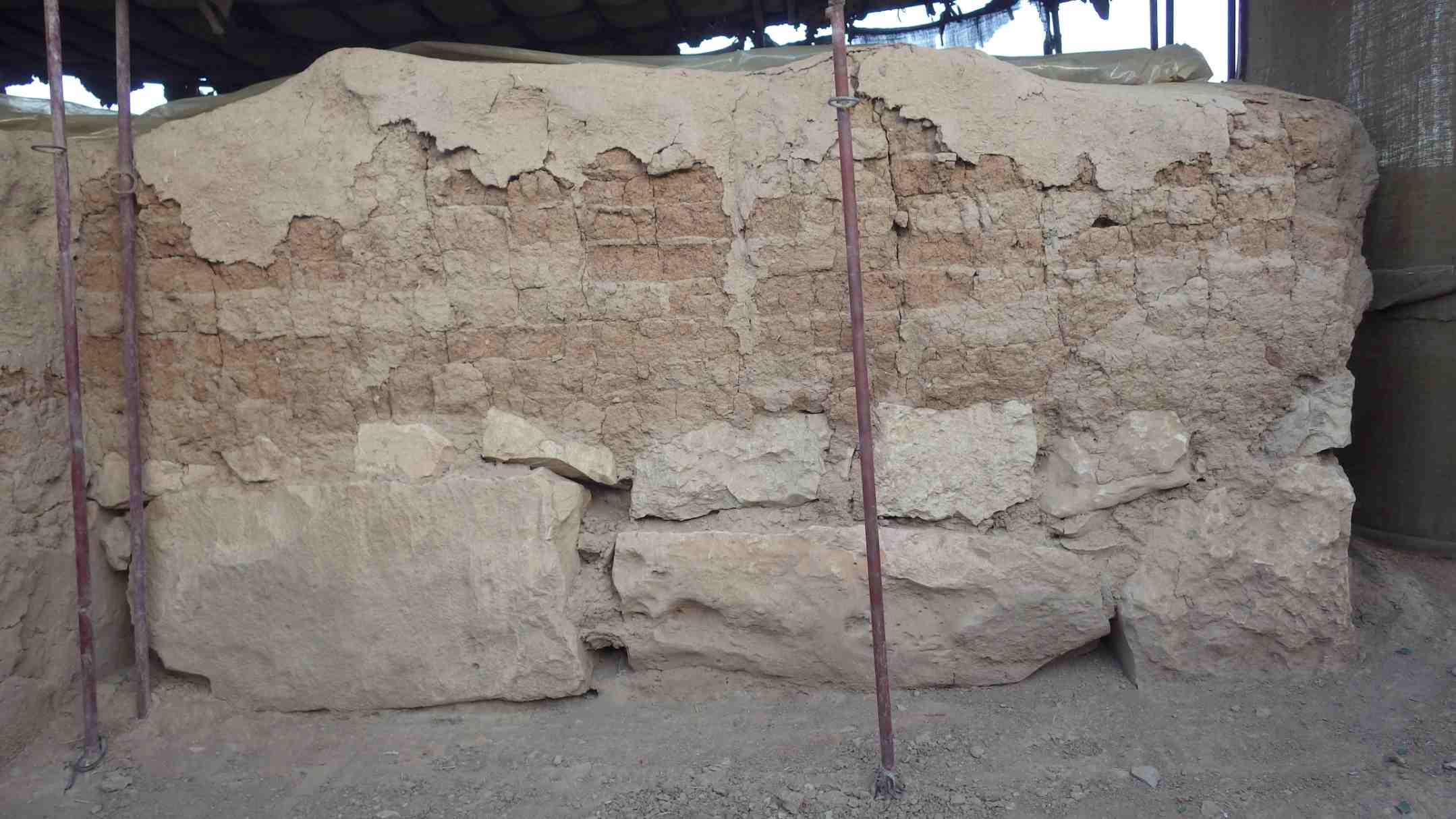 The wall is in good condition except for minor erosion of mud plaster on the top of the wall.