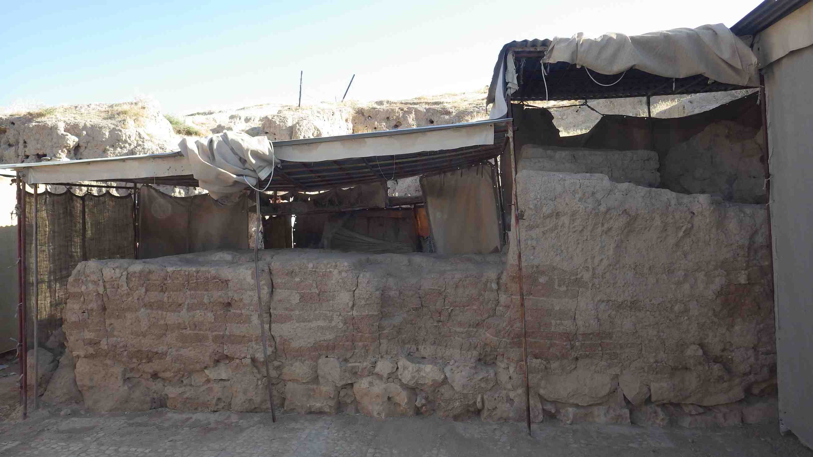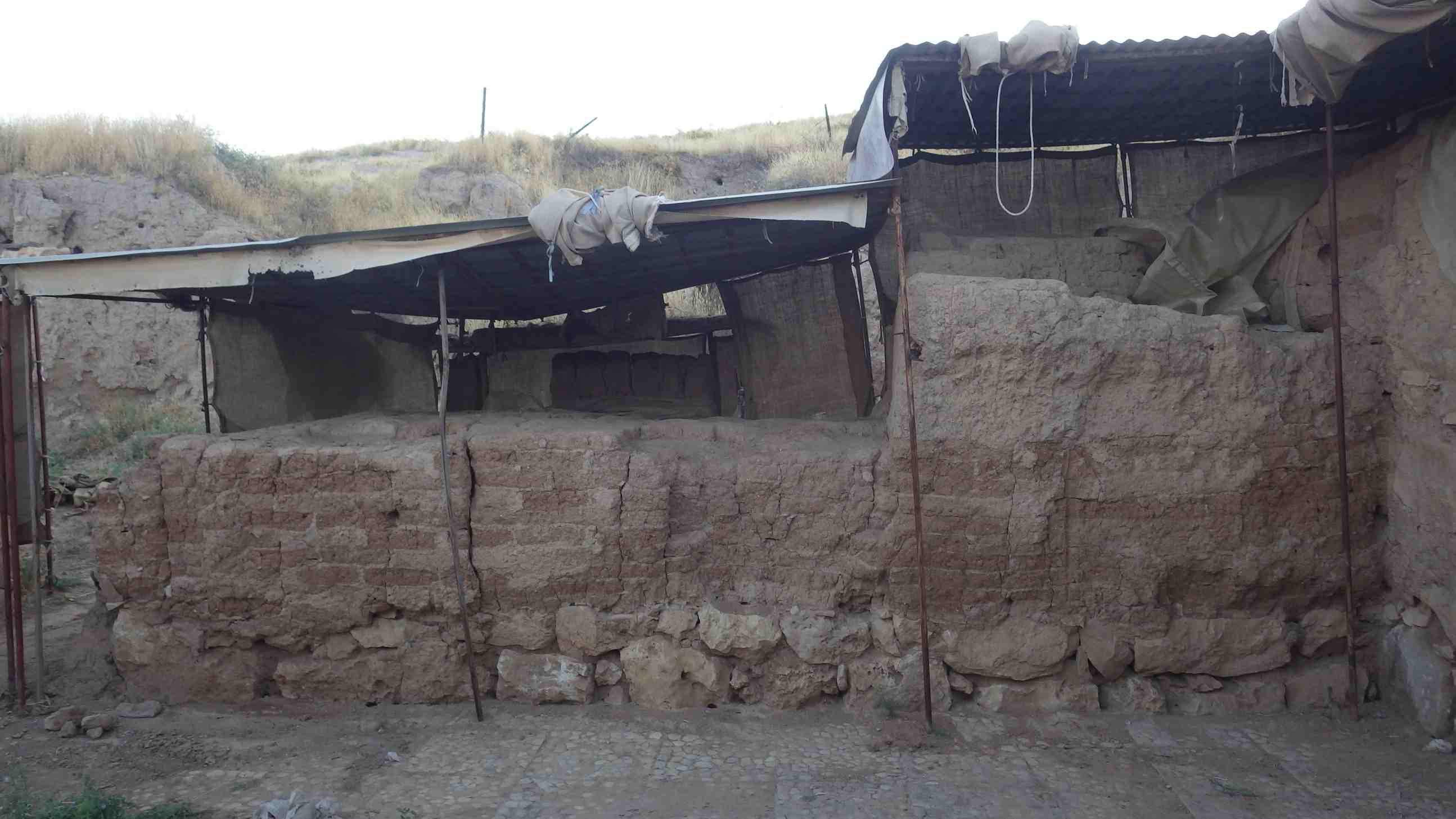 No loss in mud bricks or mortar the wall lost some small stones on the left side of the stone part. The cracks are the same as last year. In general, the wall is in good shape.
