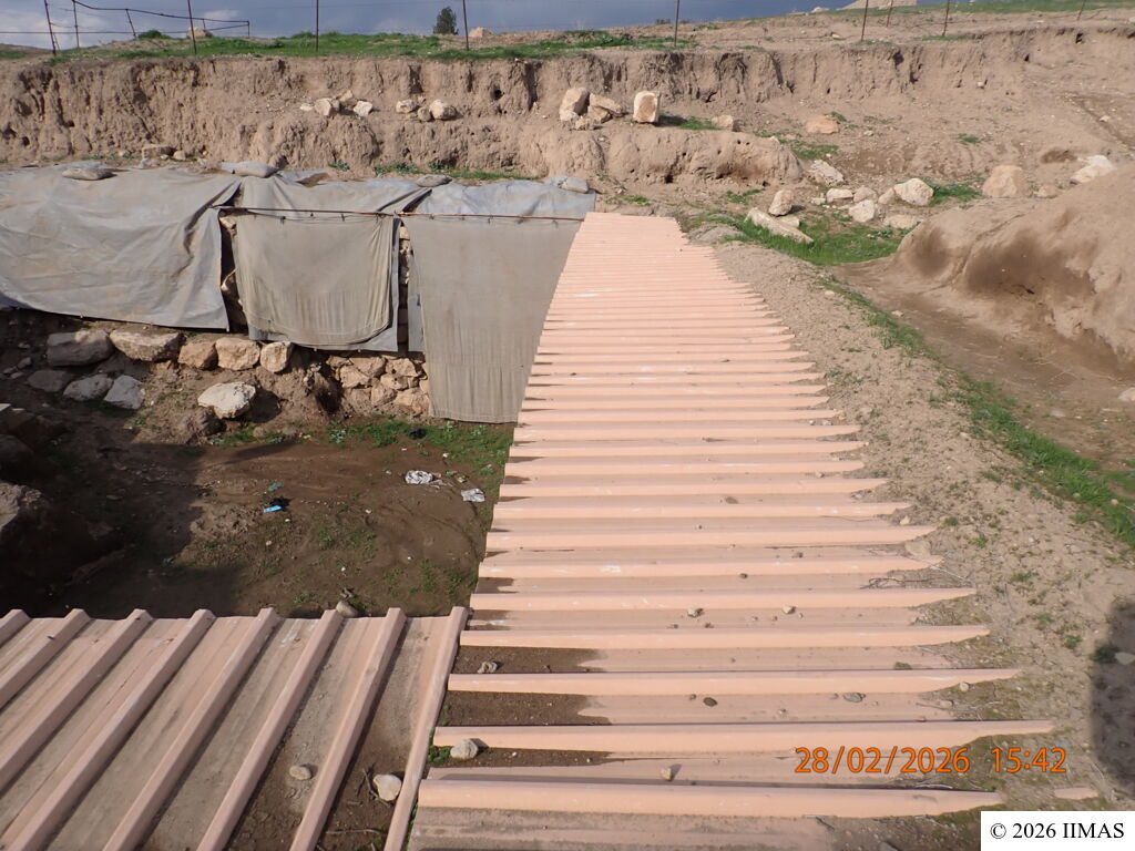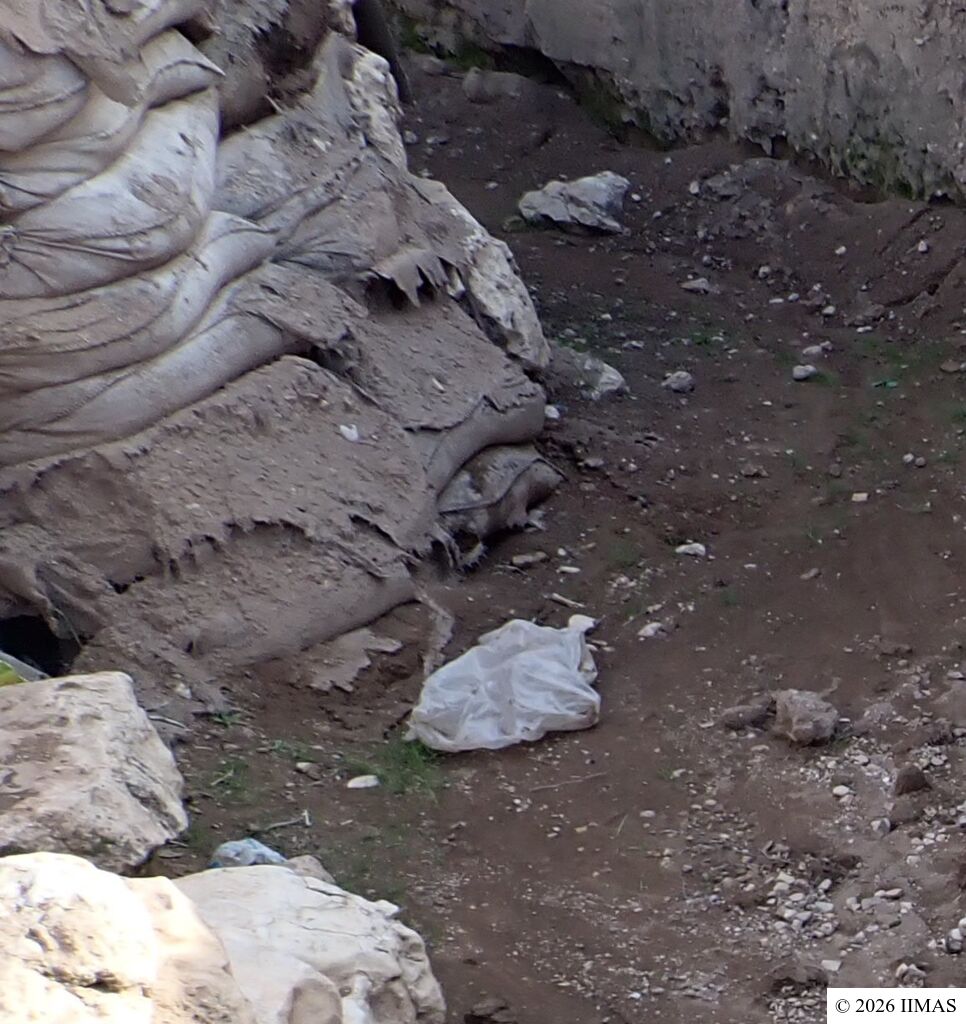 The areas J1 and J5 within the plaza undergo regular inspections to ensure they remain clean, free of debris and weeds, and to maintain the safety of both the site and its visitors. In area J1, inspections focus on monitoring the condition of the section, ensuring that no collapses or deterioration are present, as well as checking the integrity of the burlap layer designed to prevent rainwater from reaching the face of the section. In area J5, inspections include verifying cleanliness and assessing the condition of the sandbags used as a retaining wall supporting the temple’s fence. In both areas, the pathways are examined to ensure they are in good condition and safe for visitors.