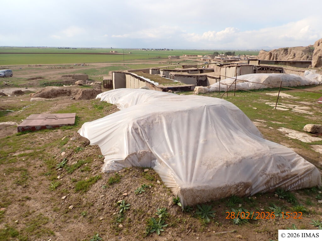 - The burlap covering of 9 walls is completely torn, and as a result, parts of some walls have deteriorated in the mud-brick, such as walls F1-4, C1-5 and C8-4.