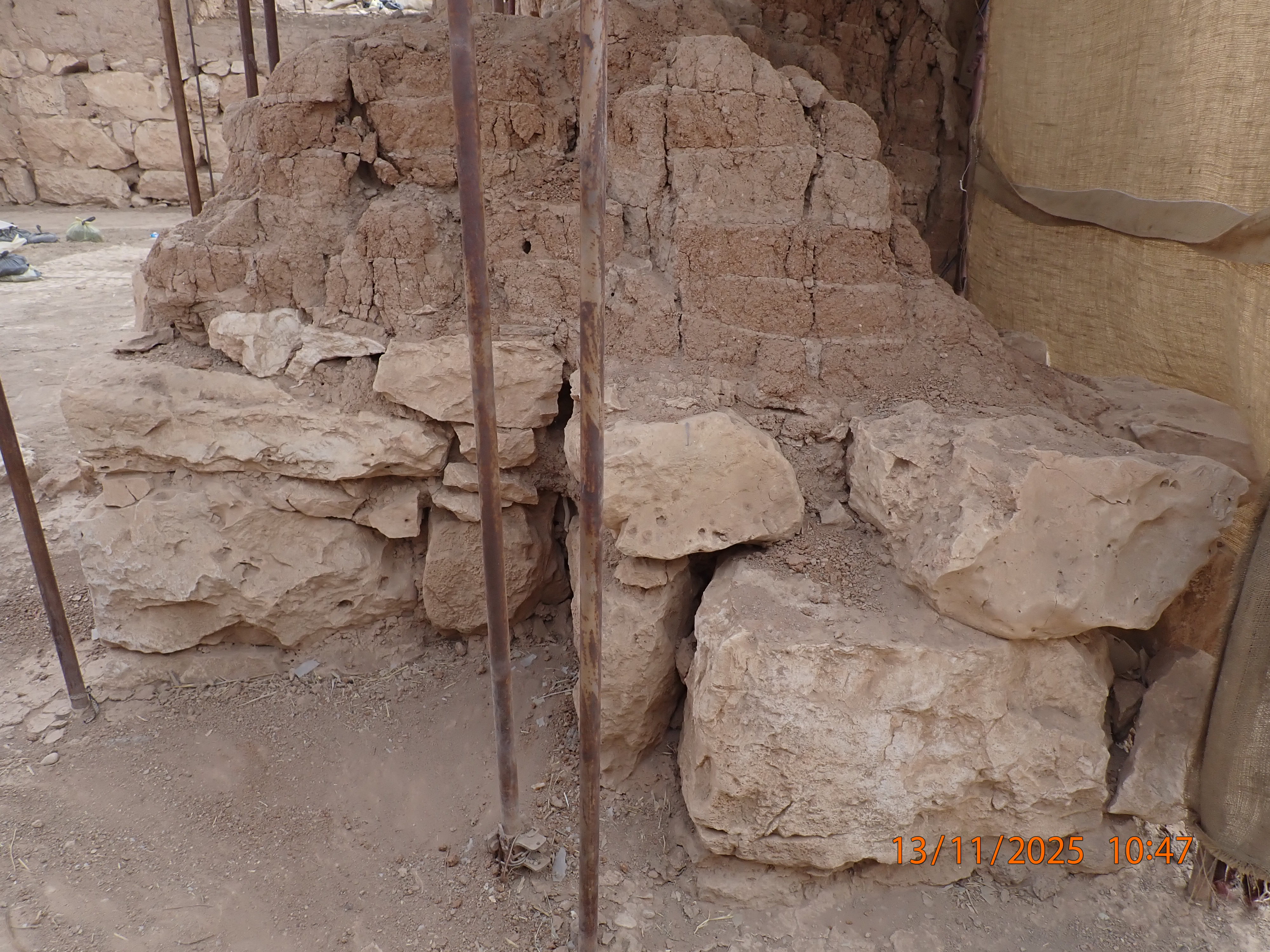 No changes to the stones. The mudbrick layer on top of the stones seems to have receeded slightly.
