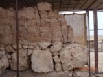 The metal pole used for the covering sistem has been folded, and pushes now against the top of the wall causing new cracks (September 2010, S. Ermidoro)