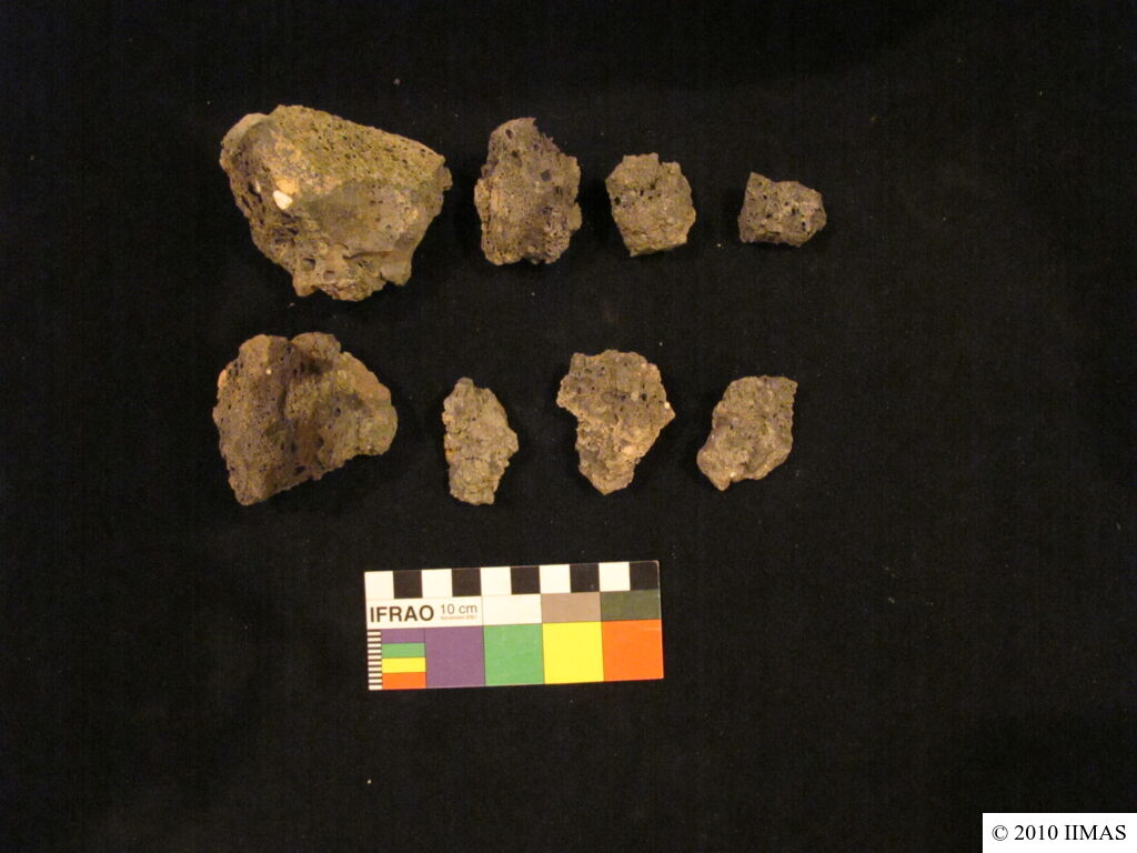 | Description (summary) | 2010-08-08 | jS | about a dozen pieces of kiln waste, fragments of one big piece; breakable, sponge-like surface with many holes, burnt, pieces of calcite visible; colour range from gray to green [Input: U808JS.j] |