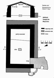 StructureThe temple is a single room structure, accessed from the long side. A large monolithic altar stood in the center of the room.Engineering calculations (performed by G. Pesce, to whom we owe the reconstruction below) suggest that it had a pitched roof. ![]() Back to top |